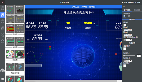 設備遠程管理及預警系統具有組態功能單元,可利用工具欄中組態工具進行編輯組態,也可上傳圖片資料作為組態素材,操作靈活,方便。
